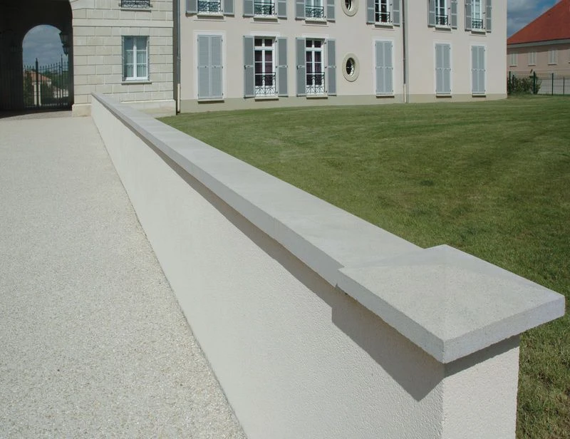 Avantages Produit : Couvre-mur de 1 pente permettant de choisir le côté d’écoulement de l’eau. Teintes assorties aux piliers correspondant. Jonction des chaperons par un joint mince d’étanchéité en acrylique facile à appliquer. 50% de gain de temps à la pose : plus besoin de revenir sur chantier pour faire les joints. Profil mâle/femelle comme guide pour un alignement parfait des pièces. Permet de s’affranchir de la protection et du nettoyage demandés par les joints traditionnels. Diminue considérablement les risques de coulure au droit des joints. Équipé de « goutte d’eau » de chaque côté pour éviter les grosses infiltrations. Précision et régularité dimensionnelles grâce à la technologie du béton compacté. Possibilité de pose collée sur blocs rectifiés ou arase rectiligne (choisir le mortier-colle en fonction). Produit « 2 en 1 » permettant tout de même la pose avec joint traditionnel au mortier. Teinté et hydrofugé dans la masse pour une meilleure tenue des couleurs. Résistant au Gel. Fabrication Française.