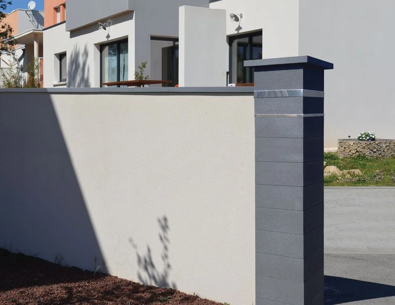 Avantages Produit : Couvre-mur de 2 pentes permettant l’évacuation efficace de l’eau des deux côtés du mur. Teintes assorties aux piliers correspondant, y compris en Dark. Jonction des chaperons par un joint mince d’étanchéité en acrylique facile à appliquer. 50% de gain de temps à la pose : plus besoin de revenir sur chantier pour faire les joints. Profil mâle/femelle comme guide pour un alignement parfait des pièces. Permet de s’affranchir de la protection et du nettoyage demandés par les joints traditionnels. Diminue considérablement les risques de coulure au droit des joints. Équipé de « goutte d’eau » de chaque côté pour éviter les grosses infiltrations. Précision et régularité dimensionnelles grâce à la technologie du béton compacté. Possibilité de pose collée sur blocs rectifiés ou arase rectiligne (choisir le mortier-colle en fonction).Fabrication Française Produit « 2 en 1 » permettant tout de même la pose avec joint traditionnel au mortier. Teinté et hydrofugé dans la masse pour une meilleure tenue des couleurs.