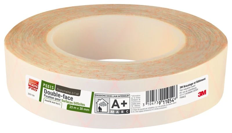 Double face de fixation pour film pare-vapeur et frein-vapeur spécial surfaces difficiles – P551S 25 x 30