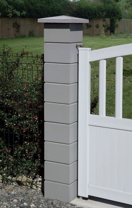 Caractérististiques : Élément de pilier Lisse Uni sans joint – largeur 24,5 : 24,5 x 24,5 x 16,7 cm Poids : 7 kg Coloris : Gris