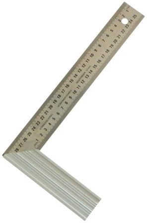 Equerre droite et d’onglet avec lame en acier inoxydable graduée, talon profilé aluminium anodisé. Longueur : 400 mm.