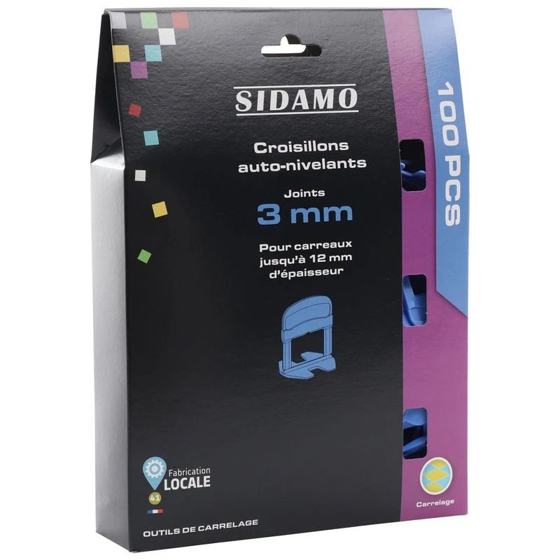 Etui de 100 croisillons auto-nivelants joints 3 mm Croisillons pour système auto-nivelant pour carreaux de 3 à 12 mm d’épaisseur Pour joints de carrelage de 3 mm Pour réaliser un carrelage parfaitement de niveau Idéal pour les carreaux de grand format A utiliser avec les cales auto-nivelantes Fabrication locale département 41