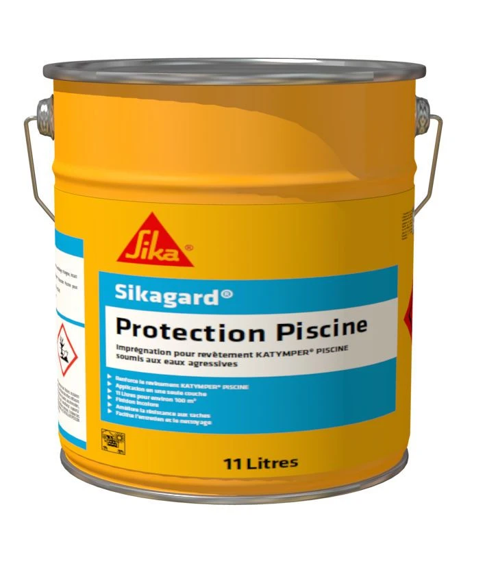 Avantages Produit : Sikagard Protection Piscine est une imprégnation prête à l’emploi conçu pour protéger et renforcer le revêtement Katymper Piscine contre les eaux de baignade agressives permettant de limiter la prolifération des algues, facilite l’entretien et le nettoyage. Température d’application : +5°C à +30°C Matériel : Rouleau laine à poils mi-longs Consommation : 1 litre pour environ 10 m² en 1 seule couche