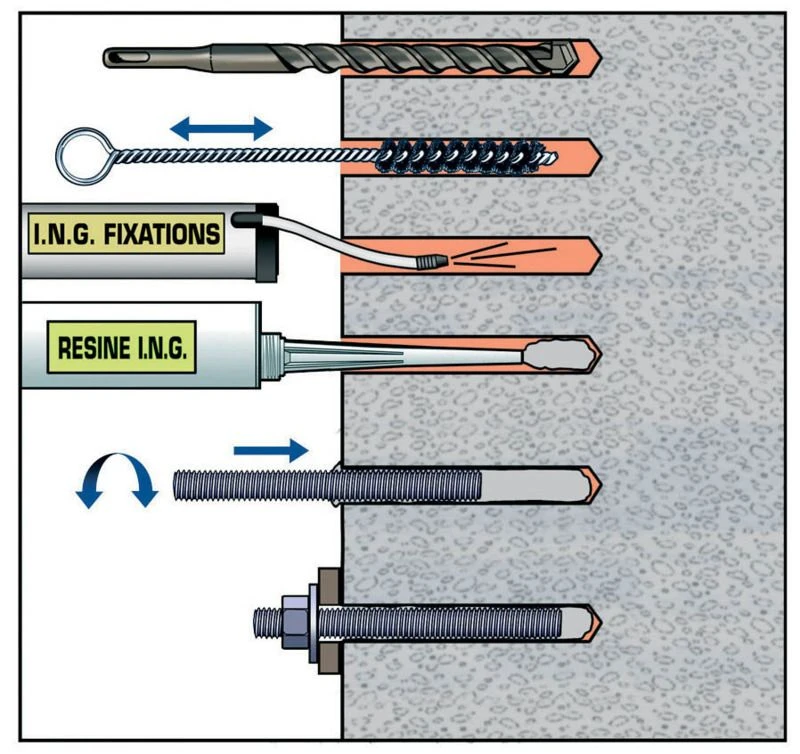 Application : Toutes fixations lourdes et structurelles dans le béton : garde-corps, abris, barrières, ,,,