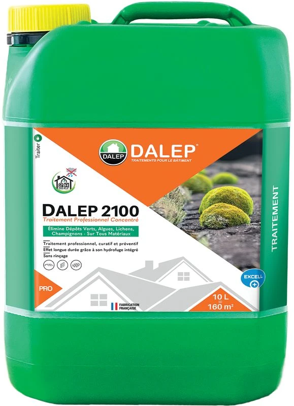 Caractérististiques : Détruit les dépôts verts, algues, lichens, champignons… sur tous les matériaux : toitures, murs, terrasses… Produit 2 en 1 : fongicide et hydrofuge Effet longue durée grâce à son hydrofuge intégré Curatif et préventif Sans rinçage Effet très longue durée S’applique en toutes saisons Traite et imperméabilise en 1 seule opération 2 heures sans pluie suffisent après le traitement Concentré à diluer : 1L + 7L d’eau = 16 m²